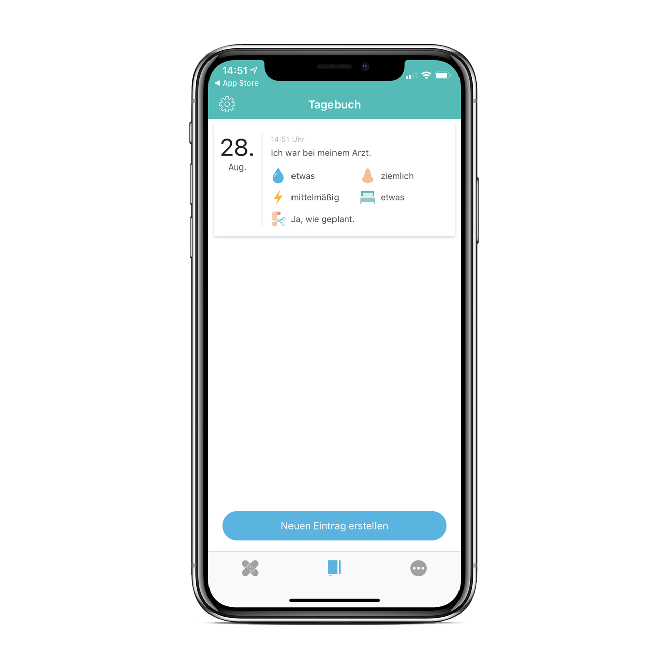 durch die kontinuierliche Dokumentation durch die Patienten mittels einer Tagebuchfunktion inklusive integrierter Kamera
